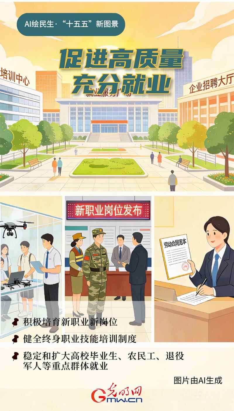 《中共中央关于制定国民经济和社会发展第十五个五年规划的建议》(简称《建议》)明确提出,实现人民对美好生活的向往是中国式现代化的出发点和落脚点。 《建议》提出了就业、收入、教育、社会保障等民生领域的一系列措施。从青年就业到老年人养老,从儿童教育到家庭医疗,这些经济红利让发展成果更加平等地惠及人民。推动高质量、全员工作 ●深入实施优先优先战略,完善劳动促进机制,形成劳动友好型发展模式。 ● 加强产业与就业合作,积极培育新就业岗位、新岗位,支持企业稳定和扩大就业。 ● 进出口探索人力资源供需匹配机制,完善终身职业技能培训体系,加强职业选择和工作理念引导,着力化解结构性矛盾。 ● 完善就业支持和公共服务体系,稳定和扩大高校毕业生、农民工、退役军人等重点群体就业,促进灵活就业和新业态健康发展。 ●加大创业支持力度,增强创业教育影响力。 ● 完善劳动标准体系和劳动关系、劳动协调机制,加强劳动者权益保护,营造公平有序的劳动环境。 ● 完善就业影响评估和监测预警,综合应对外部环境变化和就业新技术发展影响。策划/制图:袁庆